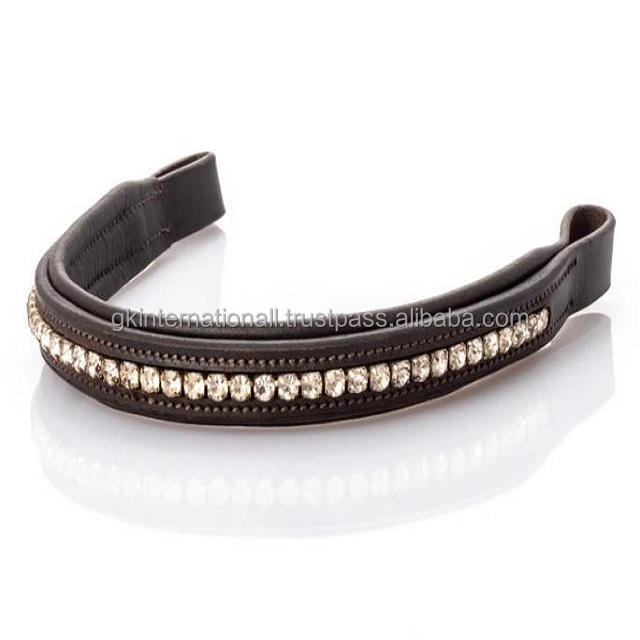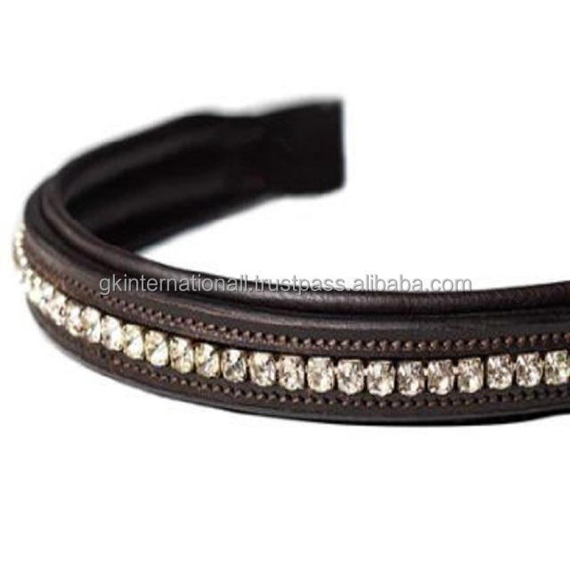 ที่คาดผมหนังม้าสีน้ำตาลฮาวานาคริสตัลสีใสทำจากผ้ากำมะหยี่ทำจากหนังวัวเย็บติดมีให้เลือกทุกขนาด