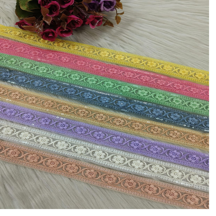 ผ้าลูกไม้ปักลายดอกไม้ออกแบบตามสั่งผสมสีสดใสและสีพาสเทลกับเส้นขอบเรียงตามลำดับเส้นตรง