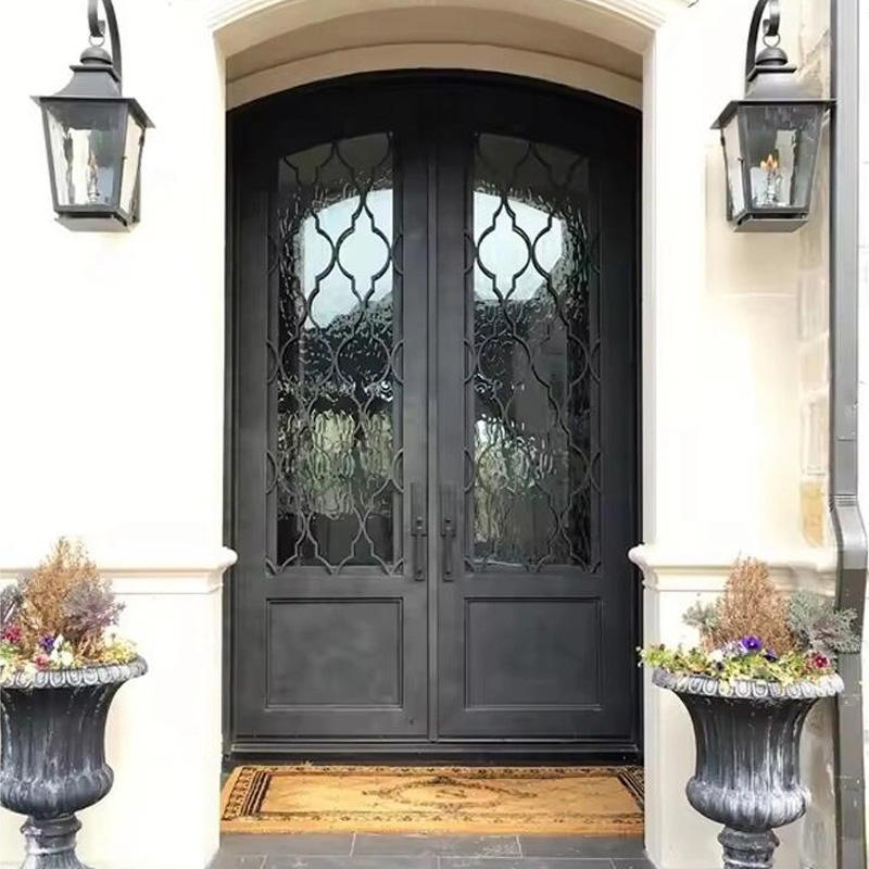 ประตูวิลล่าแบบสั่งทำประตูลานเหล็กที่ทันสมัยและเรียบง่ายและประตูทางเข้าที่ทำจากเหล็ก