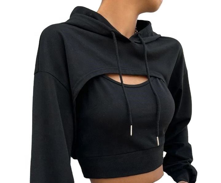 เสื้อมีฮู้ดผ้าฝ้ายผูกเชือกสำหรับผู้หญิงเสื้อโยคะเปิดไหล่ตกเสื้อฮู้ดกีฬาแบบแอกทีฟออกแบบได้ตามต้องการ