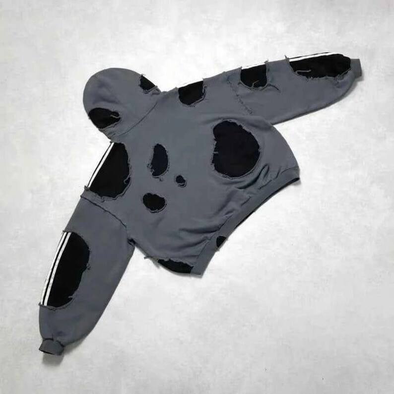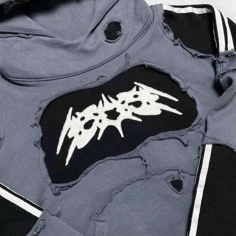 เสื้อฮู้ดแขนยาวสไตล์วินเทจทำสีซีดแบบทำเอง ประดับด้วยคริสตัลขนาดใหญ่ ดีไซน์เนอร์ฮู้ดดี้สำหรับผู้ชาย