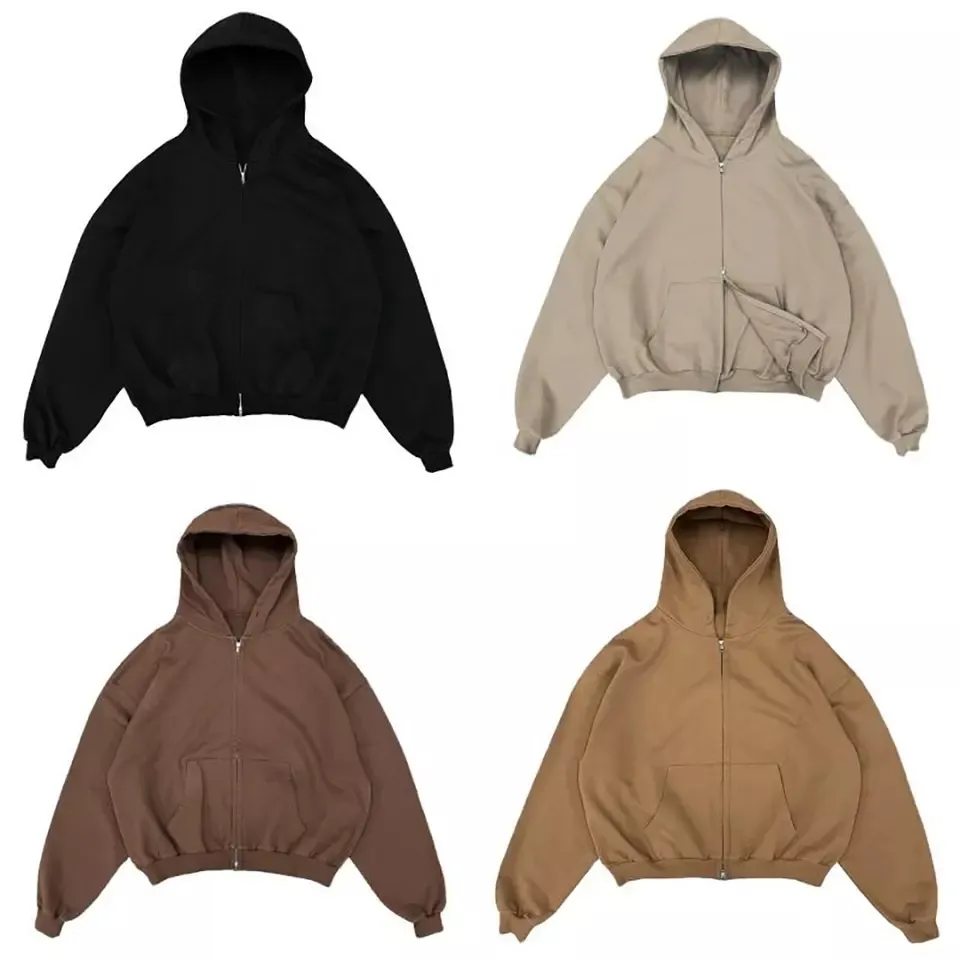 เสื้อฮู้ดผู้ชายแบบกำหนดเองเสื้อฮู้ดแบบรูดซิปเปิดไหล่ผ้าฝ้ายหนา