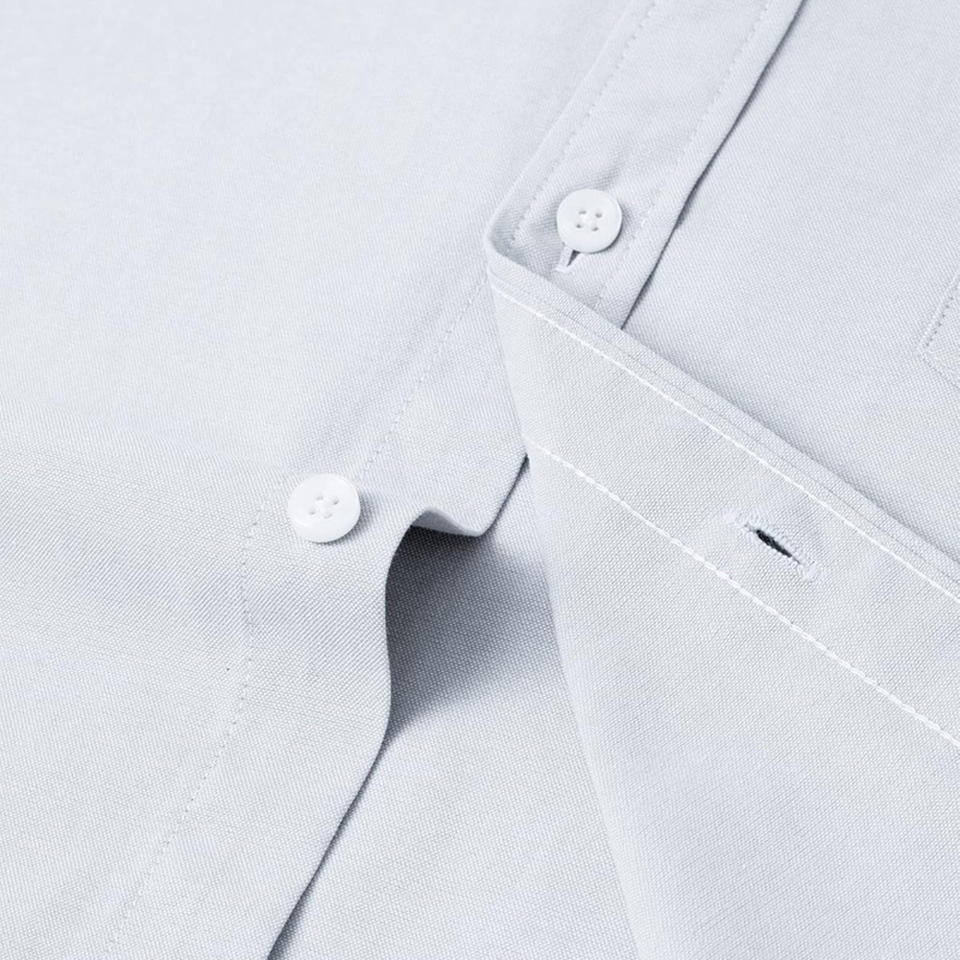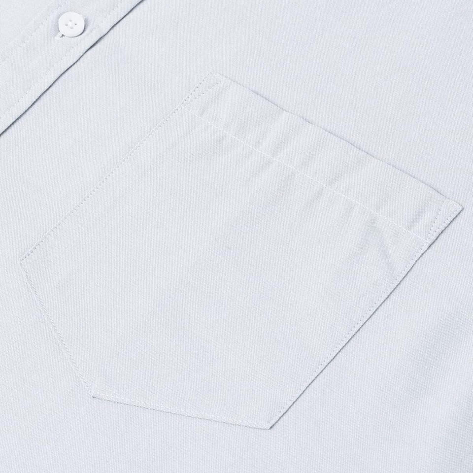 Custom mens button-up shirt with short sleeves made in breathable fabric available with logo branding and color options