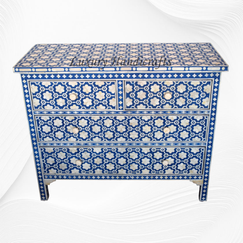 ตู้ลิ้นชักฝังมุกแบบสั่งทำพิเศษ เฟอร์นิเจอร์ห้องนอนฝังมุกสุดหรู ตู้ลิ้นชักฝังมุกสไตล์โบโฮชิค