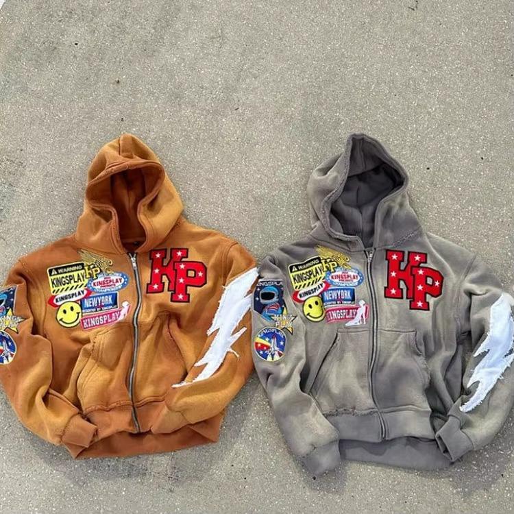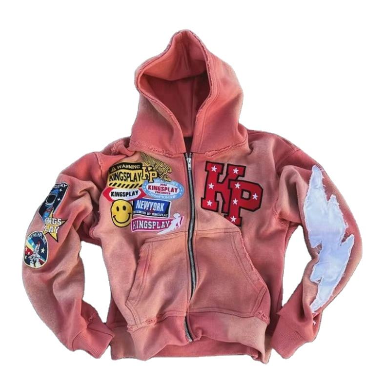 เสื้อมีฮู้ดสำหรับผู้ชายผ้าคอตตอน100% พลอยเทียมแบบกำหนดเอง450 GSM มีซิปหน้าเต็มหน้า