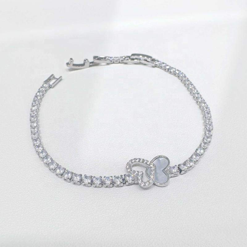 กำไลข้อมือเทนนิสแฟชั่นหรูหราเงินแท้ 925 ประดับเพชรทรงเรขาคณิตน่ารักสำหรับผู้หญิงและเด็ก ของขวัญฤดูร้อน