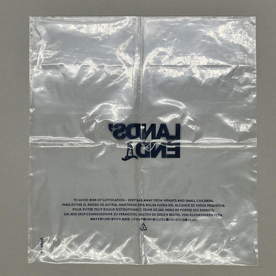 ถุงใส่เสื้อผ้าแบบมีวาล์ว ผลิตจากวัสดุรีไซเคิล ย่อยสลายได้ 100% ลายนูน พิมพ์โลโก้ตามสั่ง ดีไซน์ปากถุงแบบกลับด้าน สำหรับใส่รองเท้า มีเทปกาวในตัว