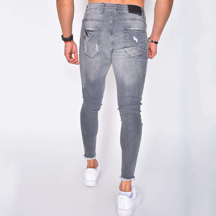 New Men's Denim Pants Light Grey Men Ripped Skinny Jeans