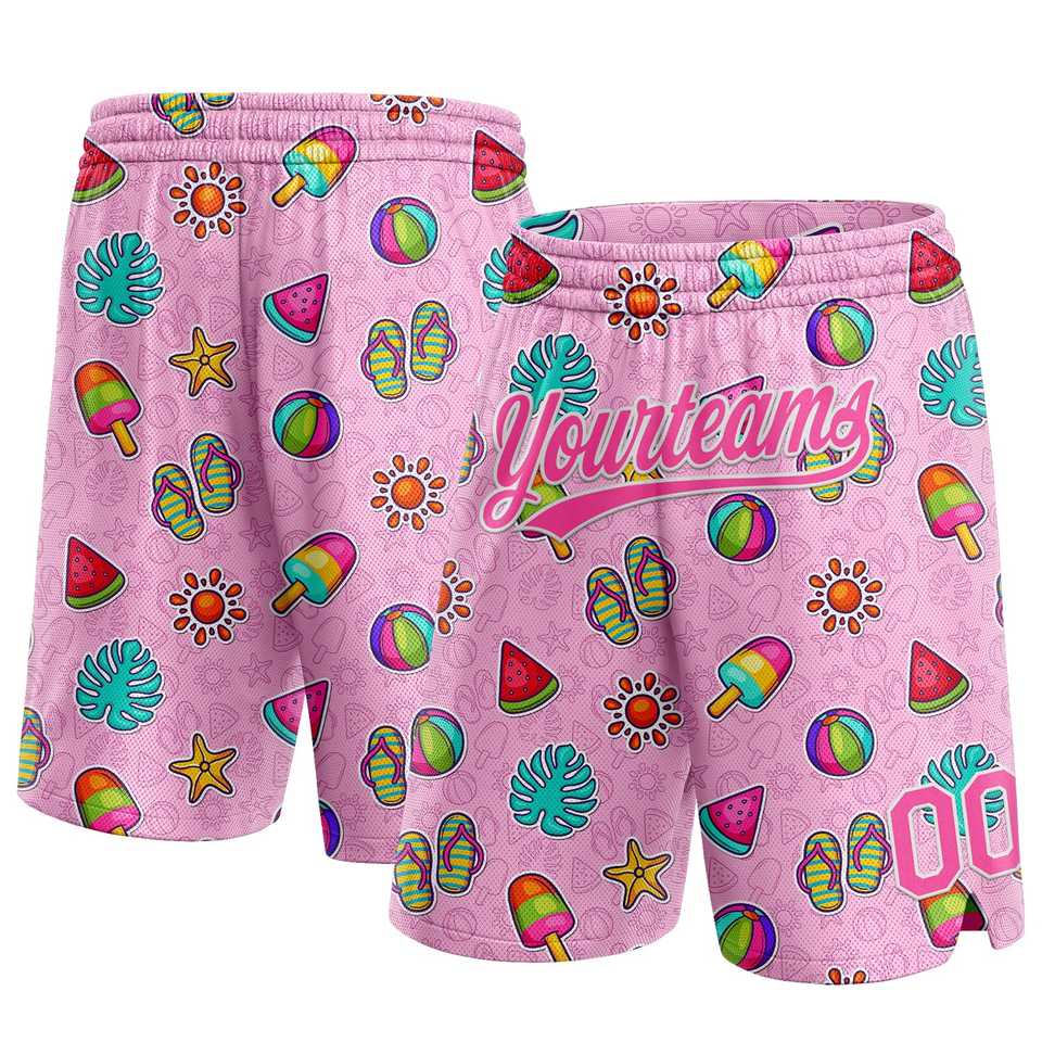 กางเกงขาสั้นสีชมพูสีขาว3D ออกแบบได้ตามต้องการกางเกงกีฬาบาสเก็ตบอลกางเกงกีฬาสำหรับฤดูร้อน