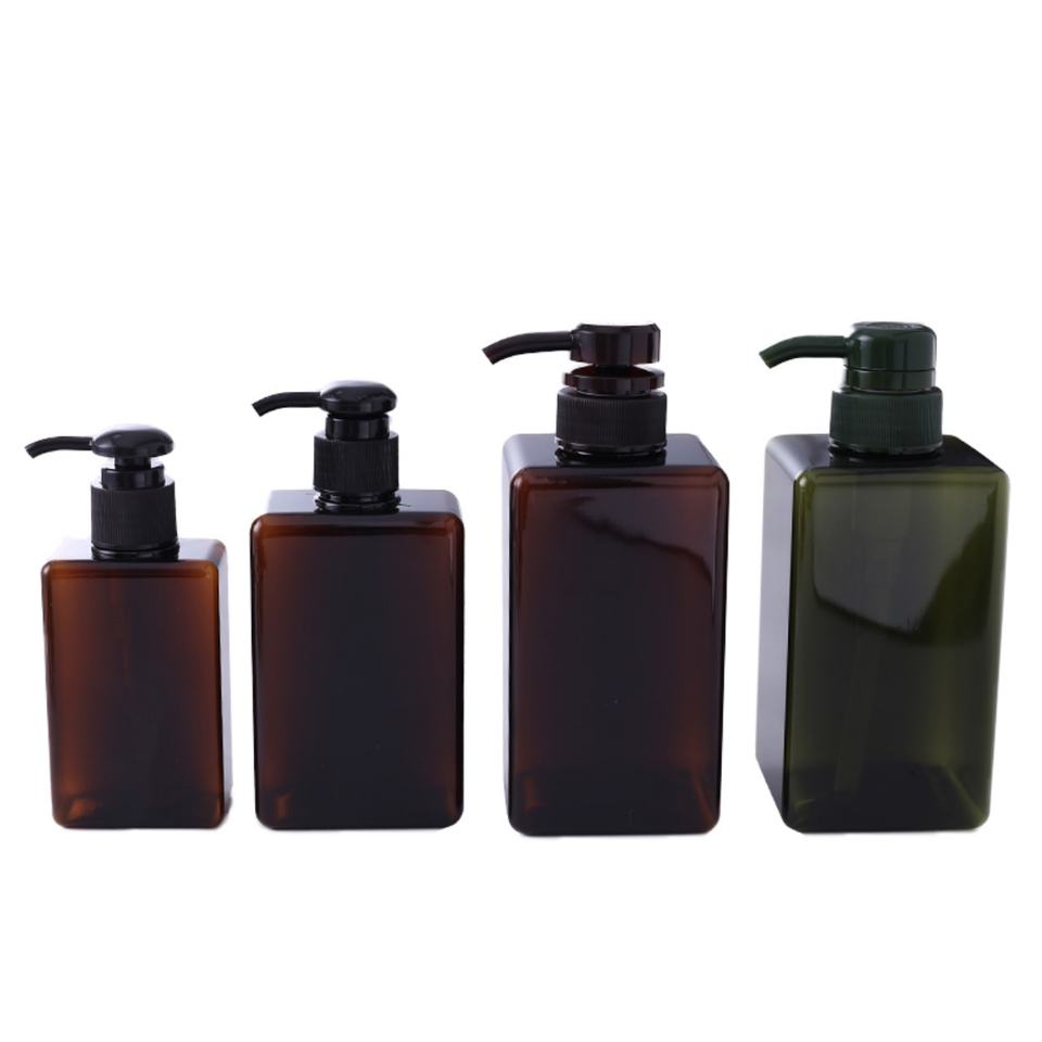 ขวดปั๊มสบู่เหลวแบบสี่เหลี่ยมจัตุรัส ขนาด 250 มล. 650 มล. สีชมพูและสีน้ำเงินไล่เฉด สำหรับแชมพู