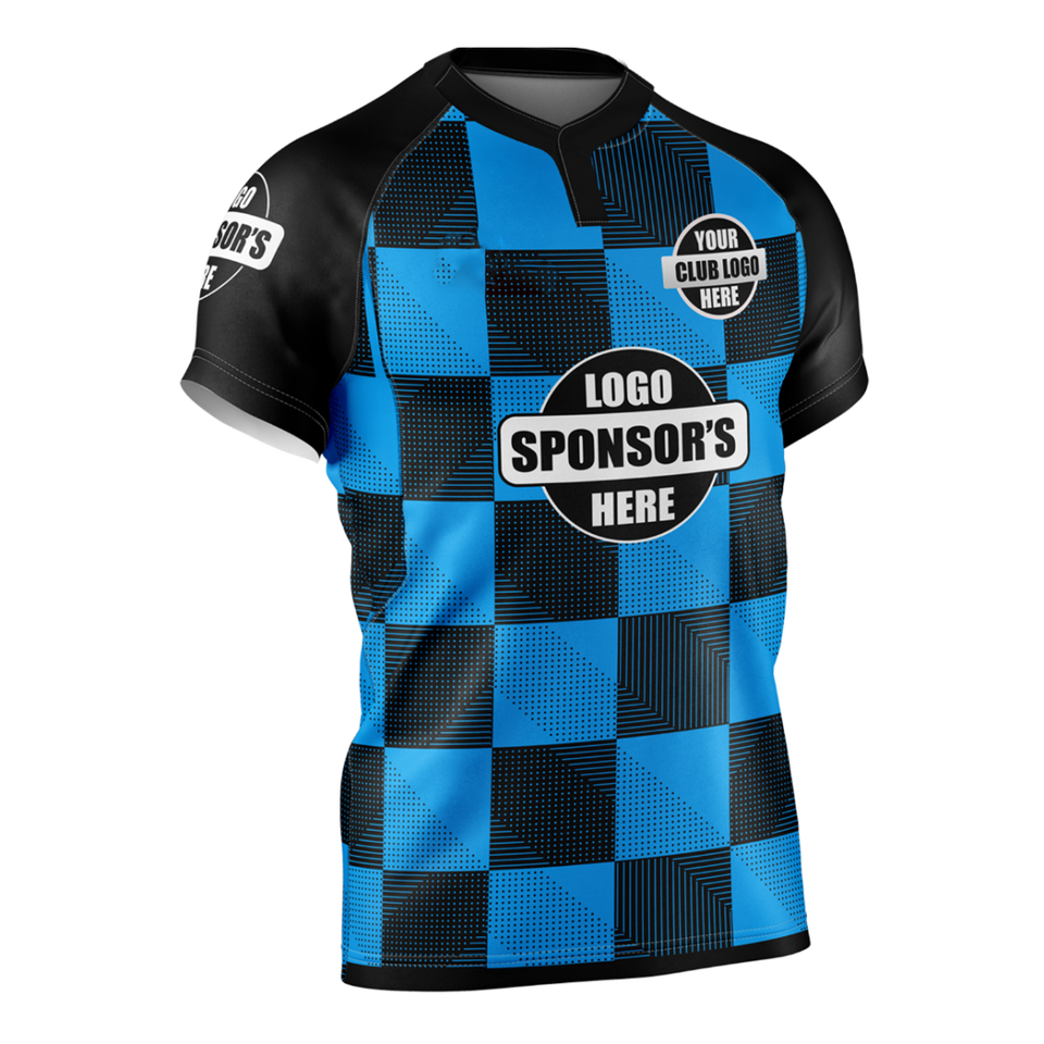 เสื้อรักบี้แบบกำหนดเอง,เสื้อสีดำสีน้ำเงินออกแบบกล่องระบายอากาศคุณภาพสูงและสะดวกสบาย/ออกแบบโลโก้และขนาดเอง