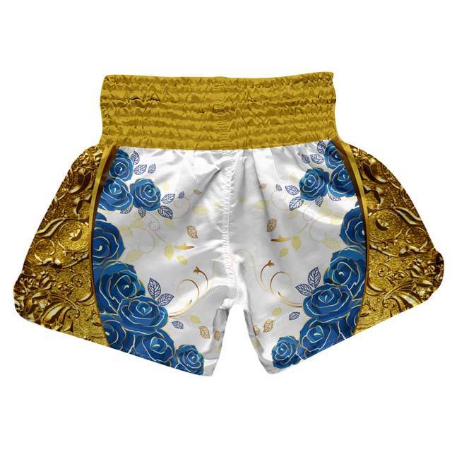 กางเกงมวยขาสั้นสีฟ้าลายดอกกุหลาบสีทอง,กางเกงมวยกำหนดได้เองพิมพ์ระเหิด