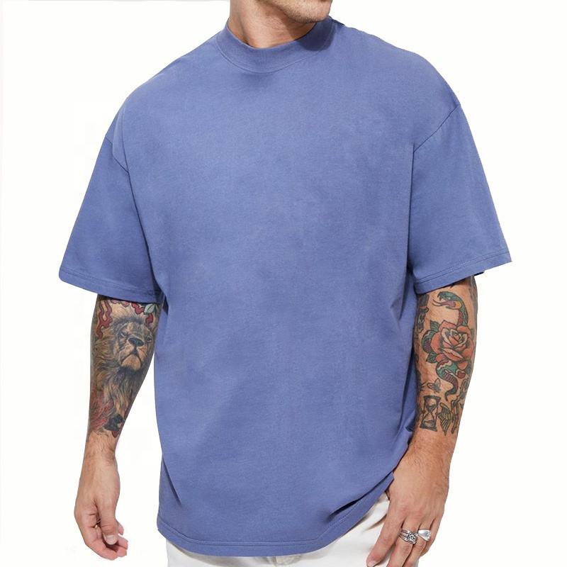 เสื้อยืดผ้าฝ้าย100% 300กรัมสำหรับผู้ชายเสื้อยืดโอเวอร์ไซส์แบบไหล่ขยายคอซี่โครงเสื้อยืดธรรมดา