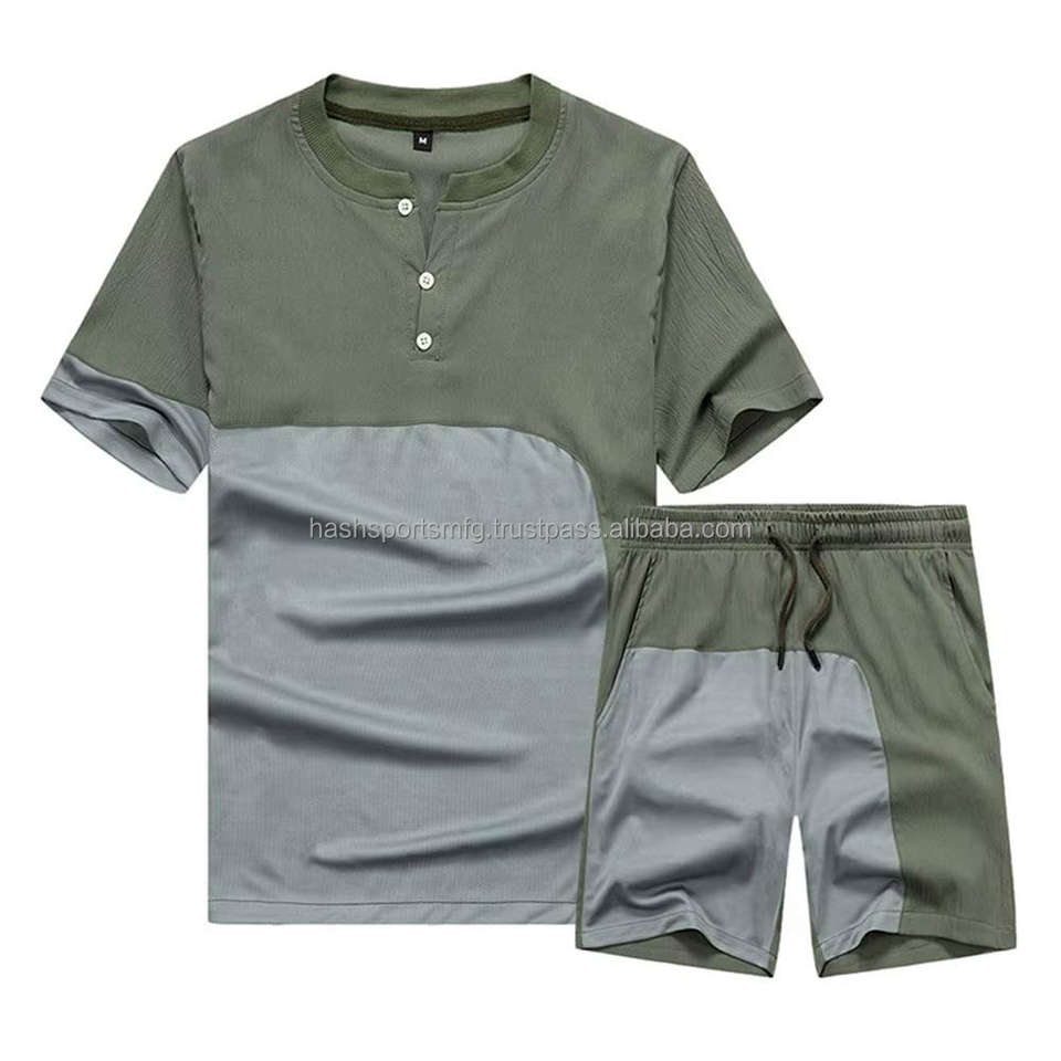 ชุดเสื้อยืดและกางเกงขาสั้นผ้าคอตตอนผสมโพลีเอสเตอร์ ย้อมสีพื้น สำหรับผู้ชาย ลายพิมพ์ ชุด 2 ชิ้น