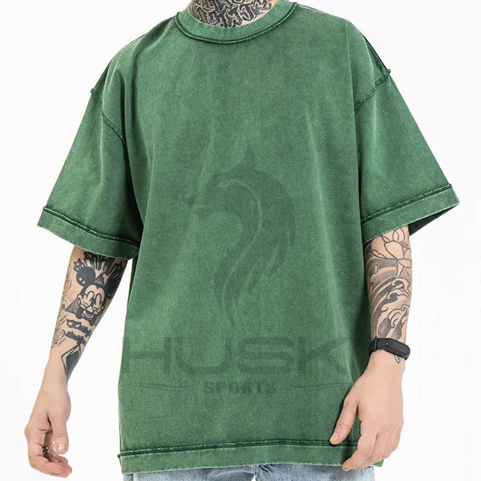 เสื้อยืดผ้าฝ้าย100% ย้อนยุคสะพายไหล่ทรงโอเวอร์ไซส์แบบกำหนดเอง