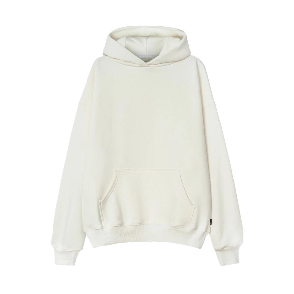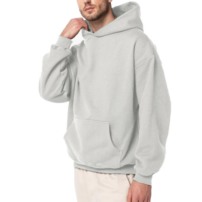 เสื้อกันหนาวมีฮู้ดแบบสวมหัวผ้าฝรั่งเศสเทอร์รี่ทรงหลวมเสื้อมีฮู้ดโชว์ไหล่สำหรับผู้ชายและผู้หญิงน้ำหนักมาก
