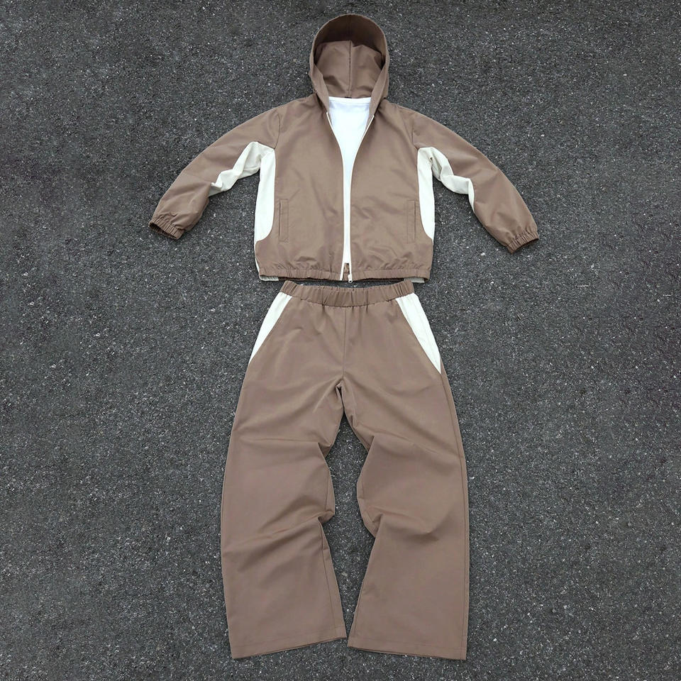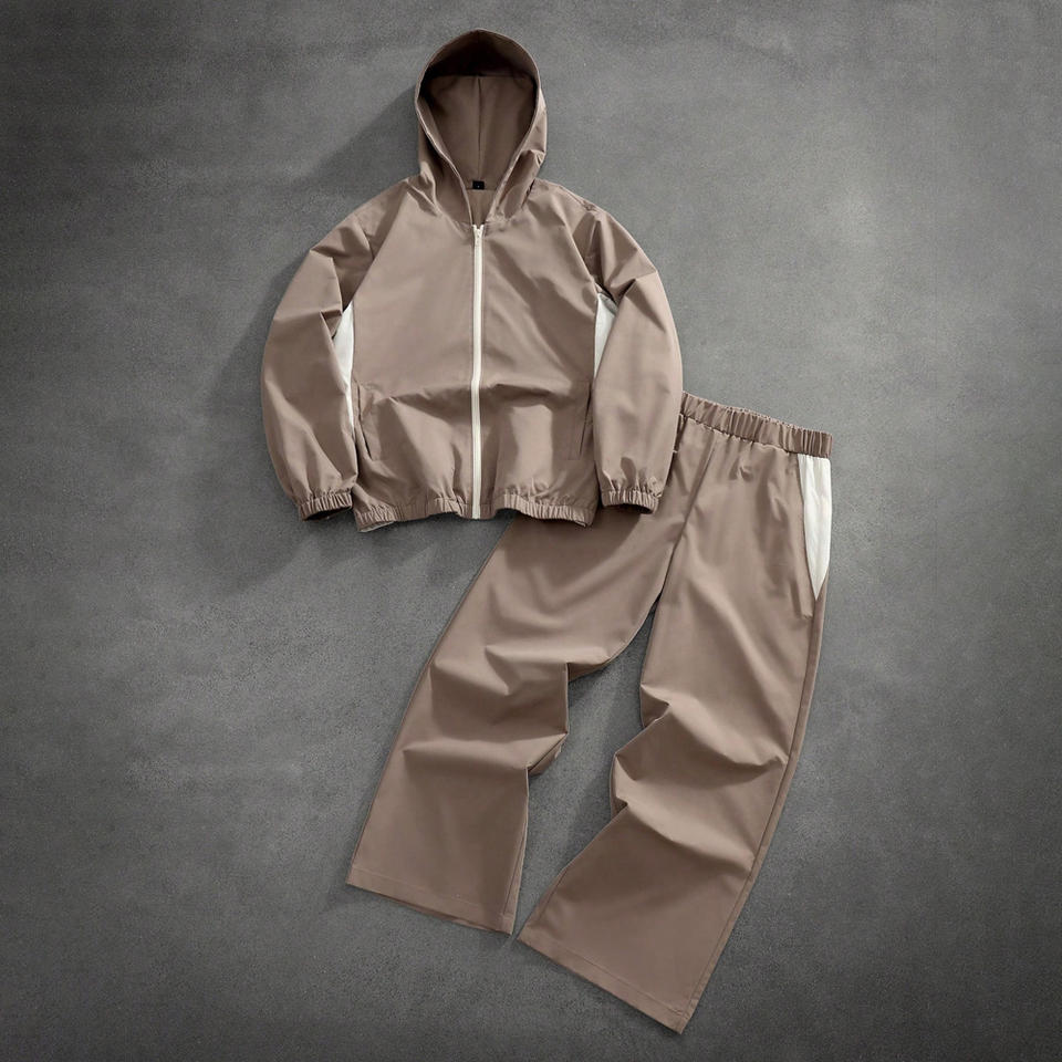 ชุดวอร์มกันลมแบบกำหนดเอง 2 ชิ้น ชุดออกกำลังกายสำหรับผู้ชายและผู้หญิง น้ำหนักเบา เหมาะสำหรับกิจกรรมกลางแจ้ง