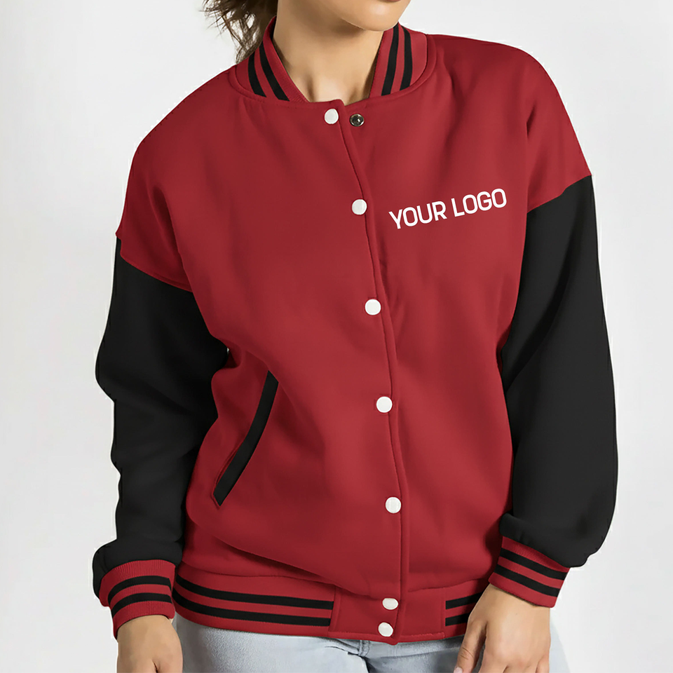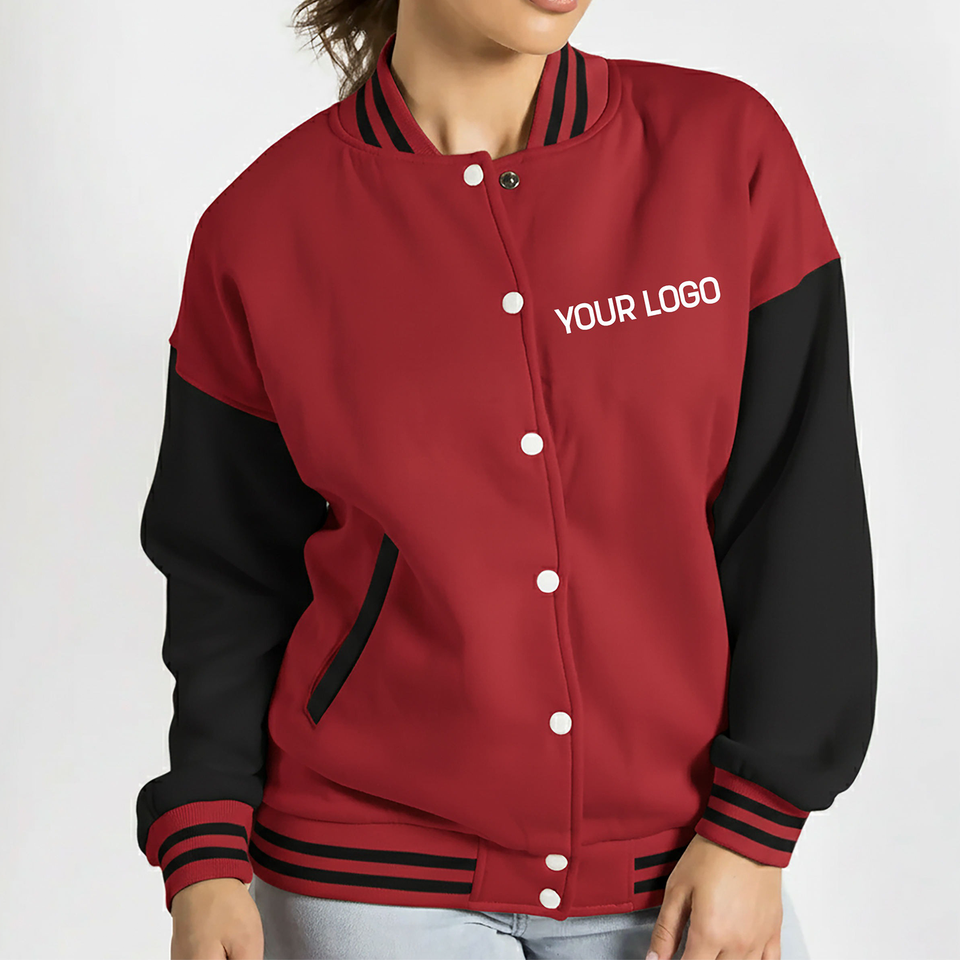 เสื้อแจ็คเก็ตวาร์ซิตี้ผู้หญิงแบบสั่งทำ ปักโลโก้ คุณภาพสูง ทำจากผ้าขนสัตว์ แจ็คเก็ตเบสบอล