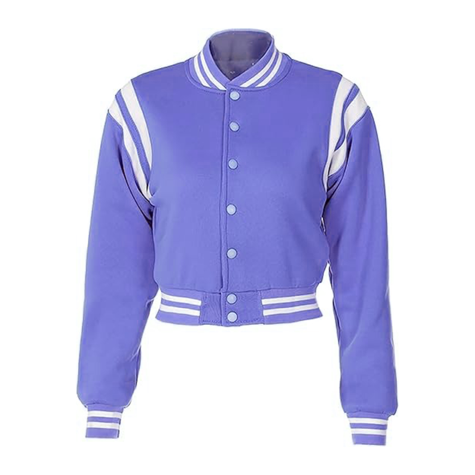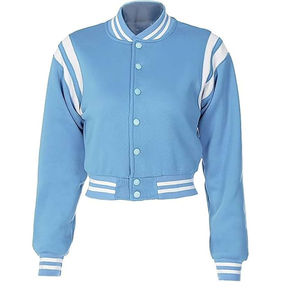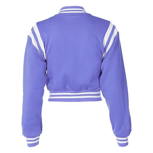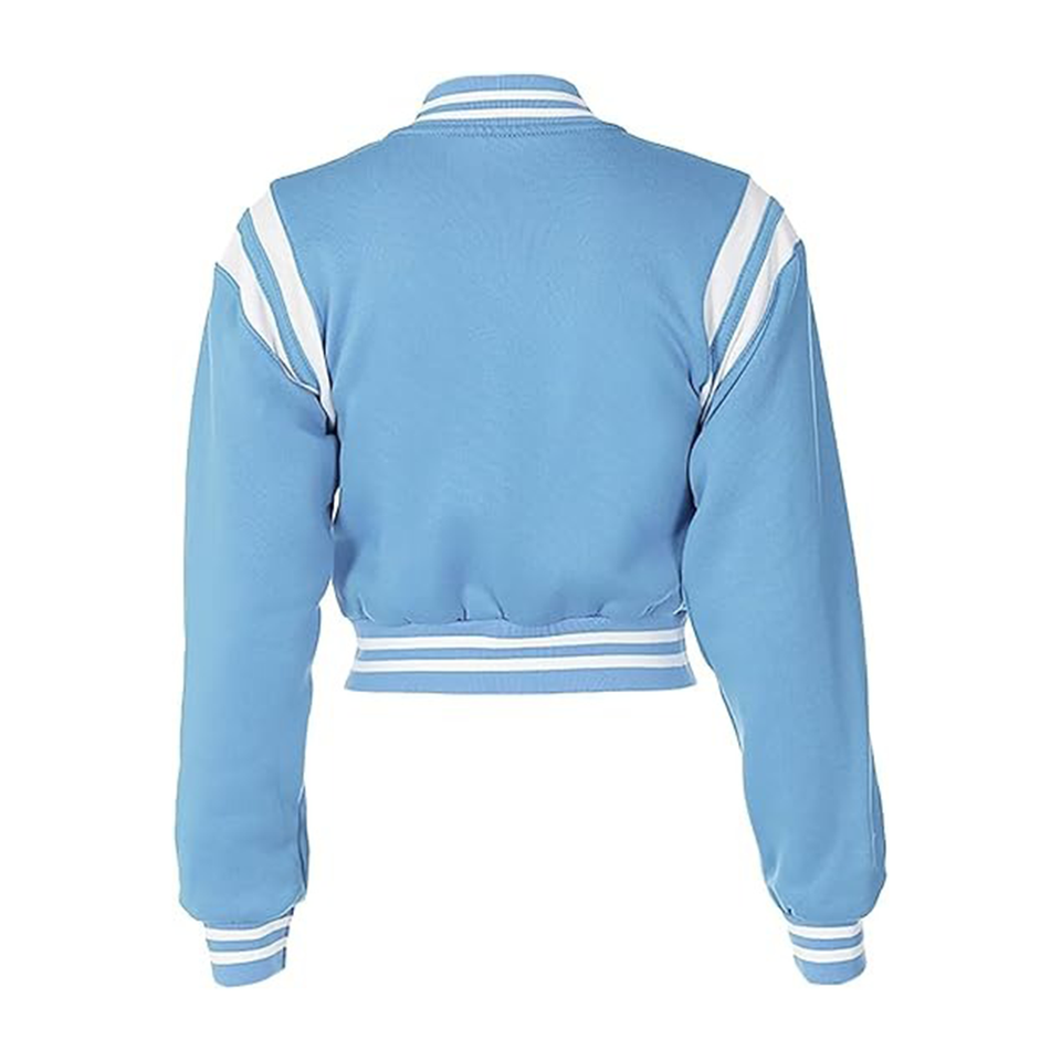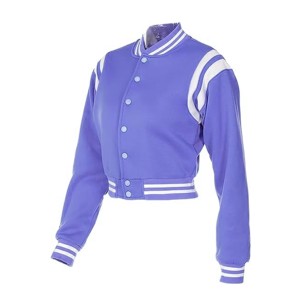 เสื้อแจ็คเก็ตวาร์ซิตี้แบบครอปสำหรับผู้หญิง ปักโลโก้ คุณภาพสูง ทำจากผ้าขนสัตว์