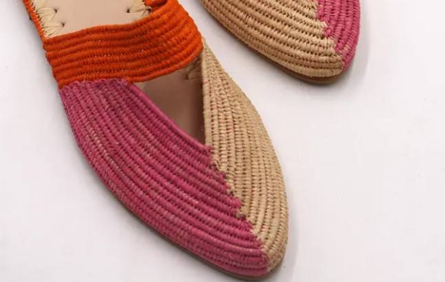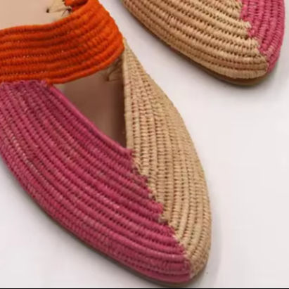 รองเท้าผู้หญิงแบบสั่งทำ รองเท้าสานราฟเฟียผู้ชาย รองเท้าทำมือสไตล์โมร็อกโกสำหรับผู้หญิง รองเท้าสานราฟเฟียแบบสวม