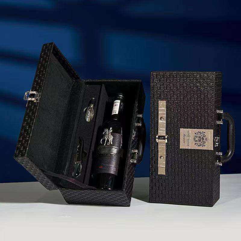 กล่องของขวัญไวน์ไม้แบบกำหนดเอง, ชุดขวดไวน์หนังหุ้มหนังแบบเดี่ยว, กล่องกระดาษ, กล่องของขวัญไวน์แบบหรูหรา, การออกแบบบรรจุภัณฑ์พร้อมโลโก้