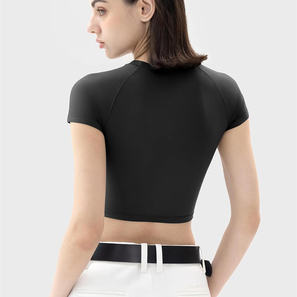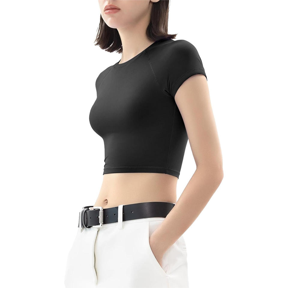 เสื้อครอปเอวลอยสำหรับผู้หญิงเสื้อผ้าออกกำลังกายในยิมระบายอากาศได้พิมพ์โลโก้ OEM ตามสั่งสำหรับออกกำลังกายในฤดูร้อน
