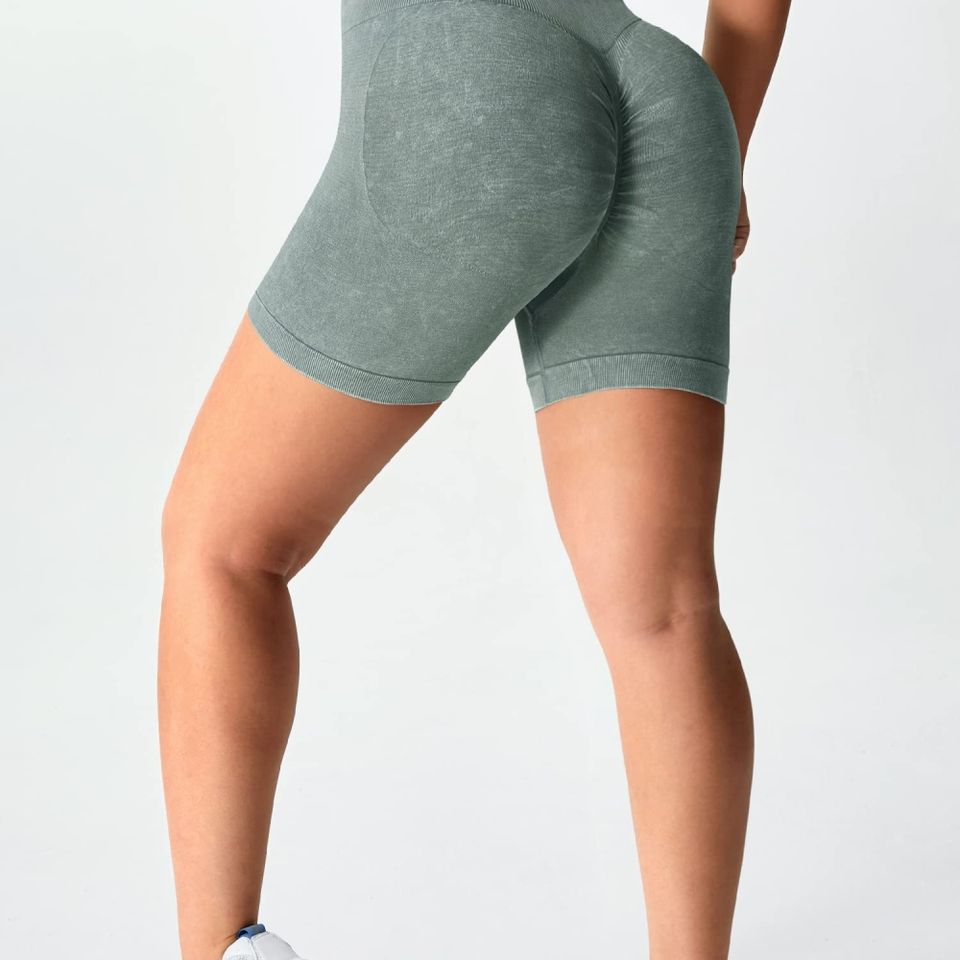 กางเกงออกกำลังกายขาสั้นไร้ตะเข็บสำหรับผู้หญิงเอวสูงสำหรับฟิตเนสโยคะและยิมชุดกีฬาออกแบบได้ตามต้องการ