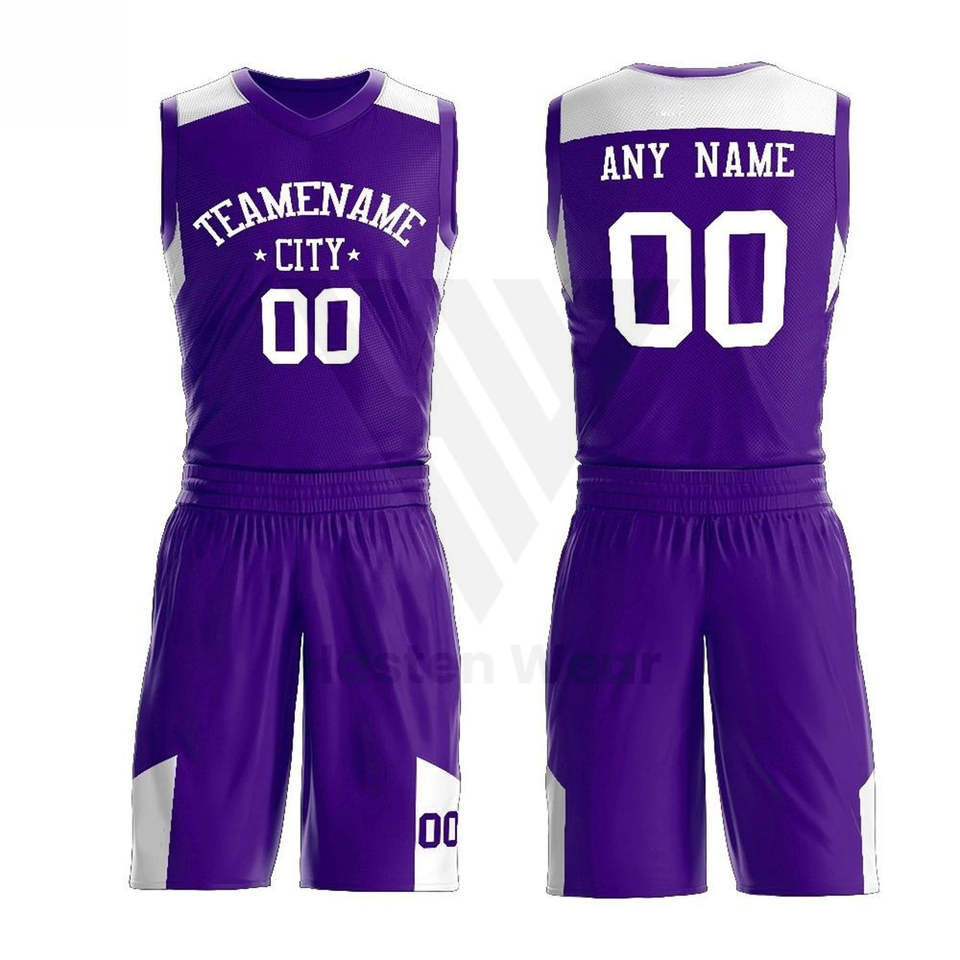 ออกแบบชุดบาสเก็ตบอลผ้าตาข่ายโพลีเอสเตอร์แบบซับลิเมชั่นพร้อมโลโก้ของคุณเอง สไตล์อเมริกาและแคนาดา