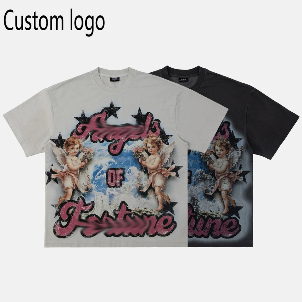 เสื้อยืดกราฟิก Angel Earth นักออกแบบโลโก้ที่กำหนดเองเสื้อยืดโอเวอร์ไซส์ผ้าฝ้ายพรีเมี่ยมสำหรับผู้ชายผู้หญิงฤดูร้อน