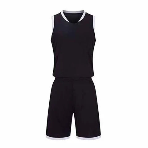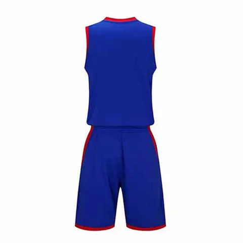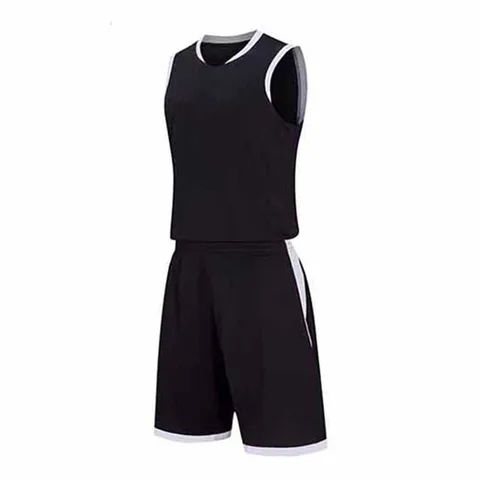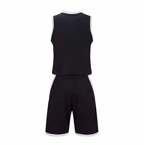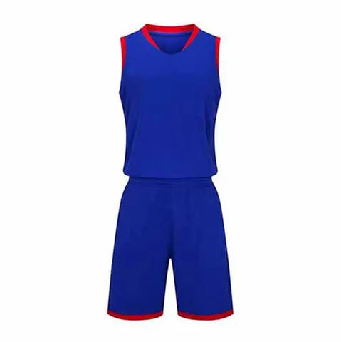 เสื้อกีฬาบาสเก็ตบอลแบบไม่มีแขน คอวี แต่งแถบสีตัดกัน พร้อมกางเกงขาสั้น สั่งผลิตได้ในจำนวนน้อย