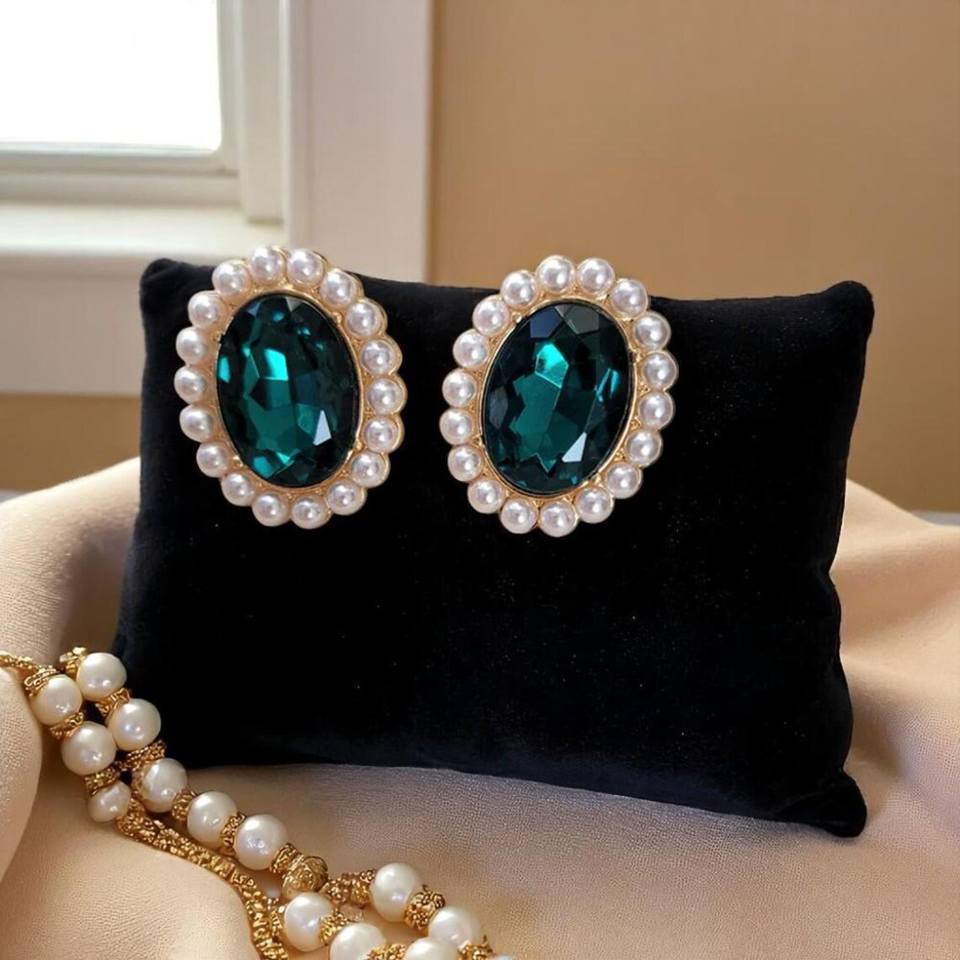 ชุดเครื่องประดับปาร์ตี้ของผู้หญิงสไตล์หรูหราต้องการลูกค้าชุดเครื่องประดับพลอยเพทายสีเขียวปักด้วยหิน3ชิ้น