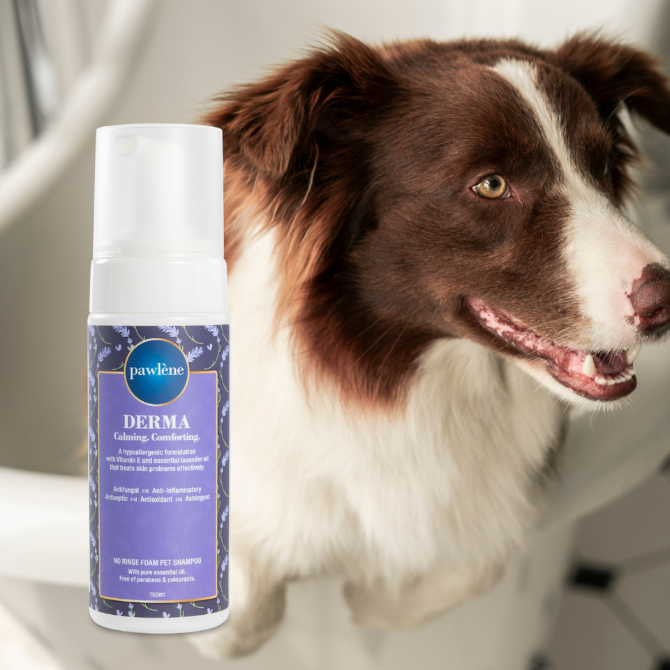 แชมพูสัตว์เลี้ยงแบบโฟม Pawlene Derma ไม่ต้องล้างออก ยอดนิยมของลูกค้า ช่วยบรรเทาอาการผื่นแพ้ ด้วยวิตามินอีและน้ำมันลาเวนเดอร์