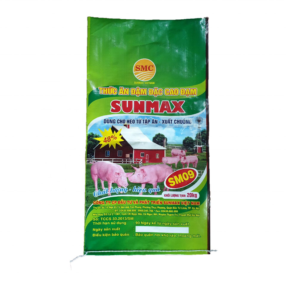 ถุงพลาสติกทอ PP แบบปรับแต่งได้50กก. กันความชื้นน้ำปั๊มร้อนด้ามปิดผนึกสำหรับป้อนแป้งปุ๋ยข้าว