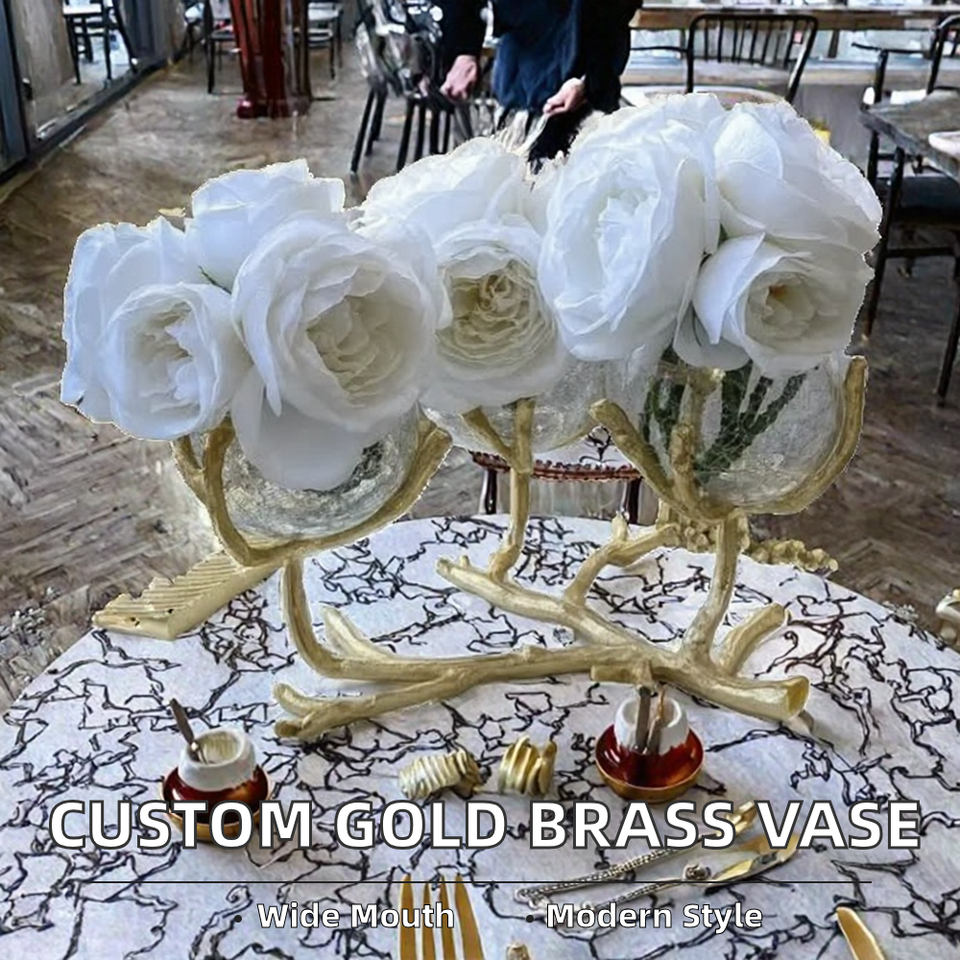 แจกันตั้งโต๊ะทรงปากกว้างทองเหลืองคุณภาพสูงทันสมัยปรับแต่งได้ ผลิตด้วยมือ น้ำหนักเบา ฐานกันลื่น เป็นมิตรกับสิ่งแวดล้อม JS
