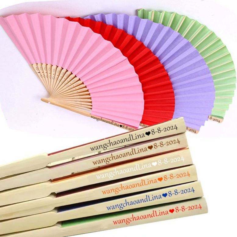 พัดพับฤดูร้อนแบบปรับแต่งได้สำหรับงานแต่งงาน สไตล์ญี่ปุ่นจีนโบราณ วัสดุไม้ไผ่ ผลิตภัณฑ์งานเพ้นท์ลายแต่งงาน