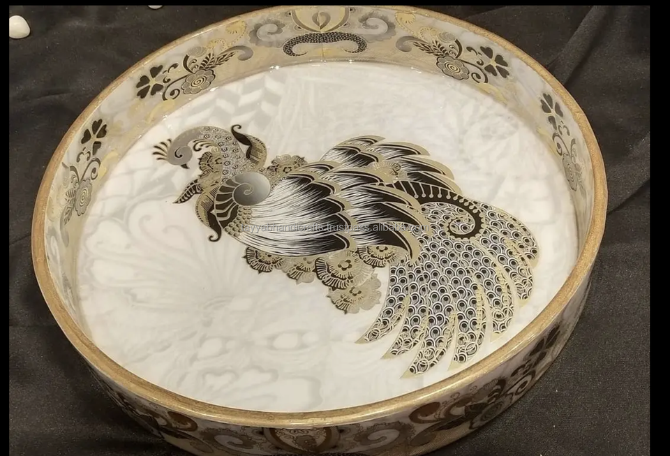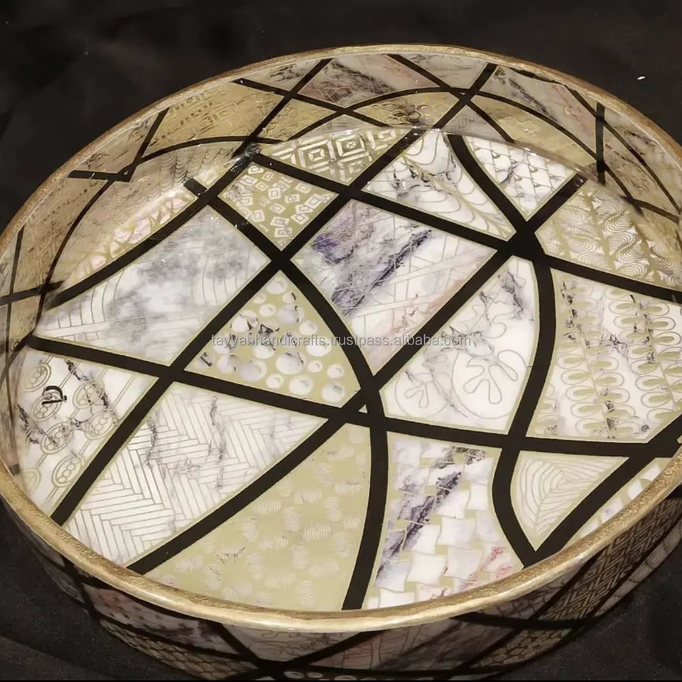 ถาดไม้ใส่อาหารรูปทรงสี่เหลี่ยมสำหรับเก็บผลไม้ตกแต่งห้องทานอาหารเช้าจากอินเดีย