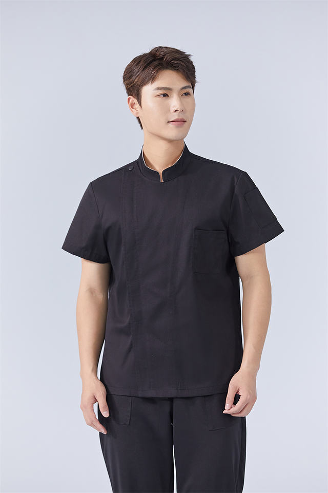 เสื้อเชฟแขนสั้นผ้าทอสำหรับบาร์คาเฟ่และร้านอาหารญี่ปุ่น