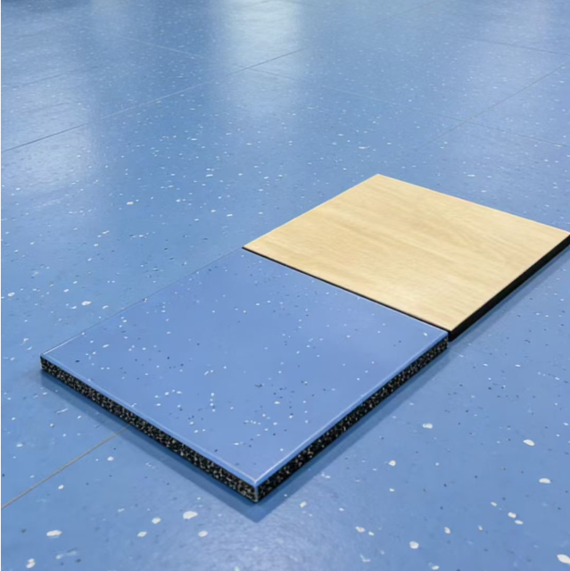 กระเบื้องยางพีวีซีลายไม้สีสันสดใสแบบกำหนดเอง สำหรับยิม แบบม้วน/แผ่น/แผ่นรองพื้น พร้อมพิมพ์ลาย UV