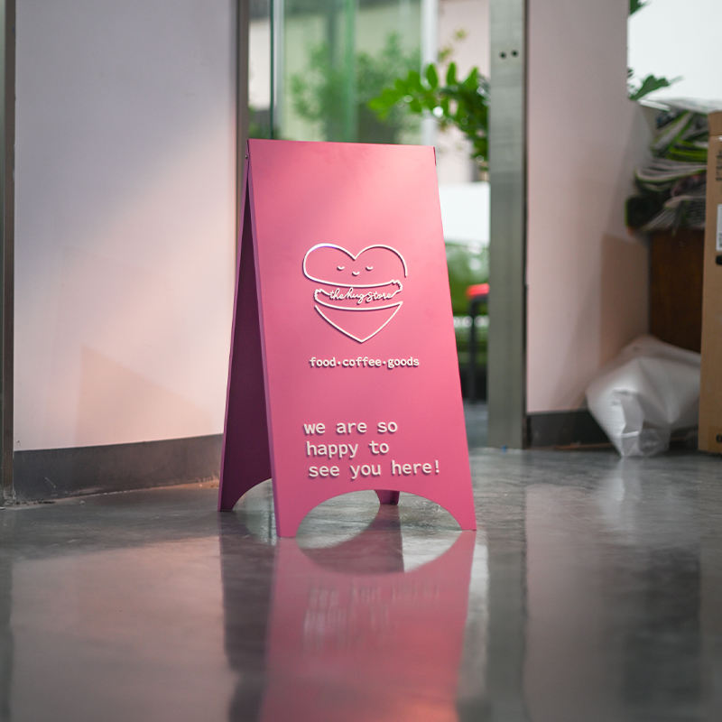 ยืนแสดงบอร์ดชื่อผลิตภัณฑ์