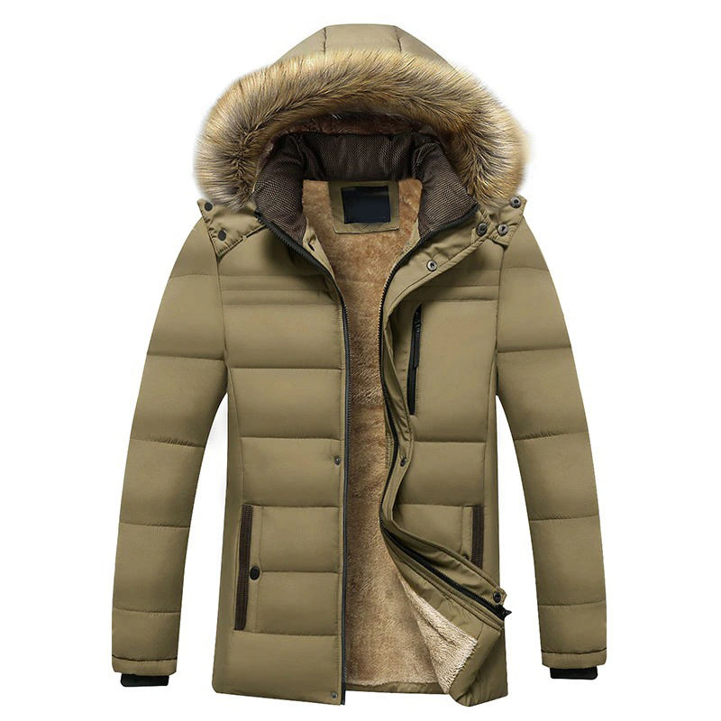 เสื้อแจ็คเก็ตแฟชั่นฤดูหนาวแบบใหม่สำหรับผู้ชาย แบบหนา อุ่น มีฮู้ด บุขน เสื้อคลุมกันหนาว