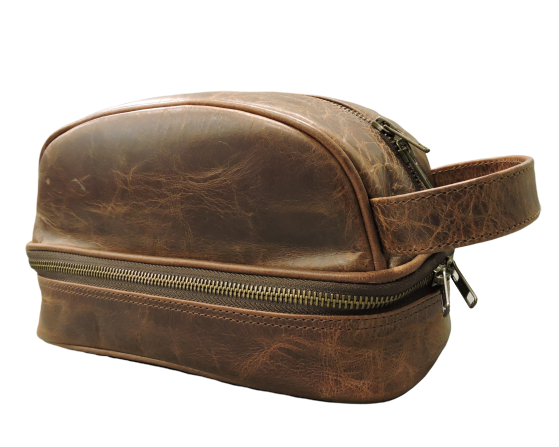 กระเป๋าเครื่องแป้งหนังควายแท้แบบปรับแต่งได้กระเป๋าขนาดเล็กสำหรับใส่อุปกรณ์อาบน้ำในการเดินทางสีน้ำตาลแบบชนบท