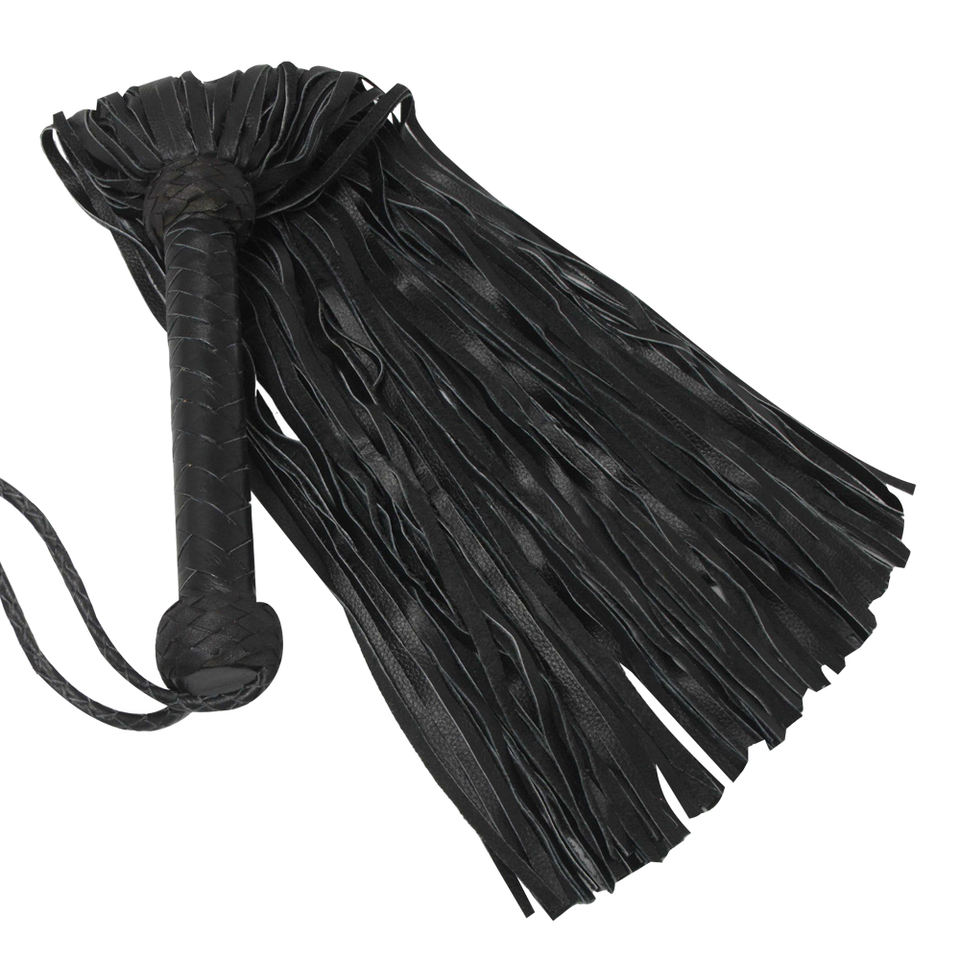 ฟล็อกเกอร์หนังวัวแท้สีดำพร้อมหาง
