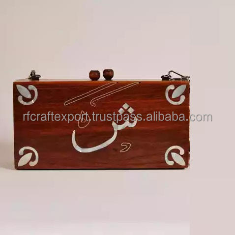 Customised Gold Islamic Wedding Clutch Handmade Wooden Indian Evening Bag Personalized Wedding Gift