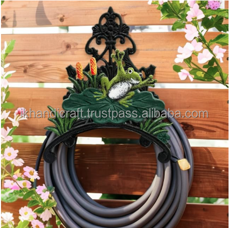 Customised High-Demand Cast Iron Heavy-Duty Garden Hose Holder Decorative Hand-Painted Frog Wall-Mounted Water Hose Reel