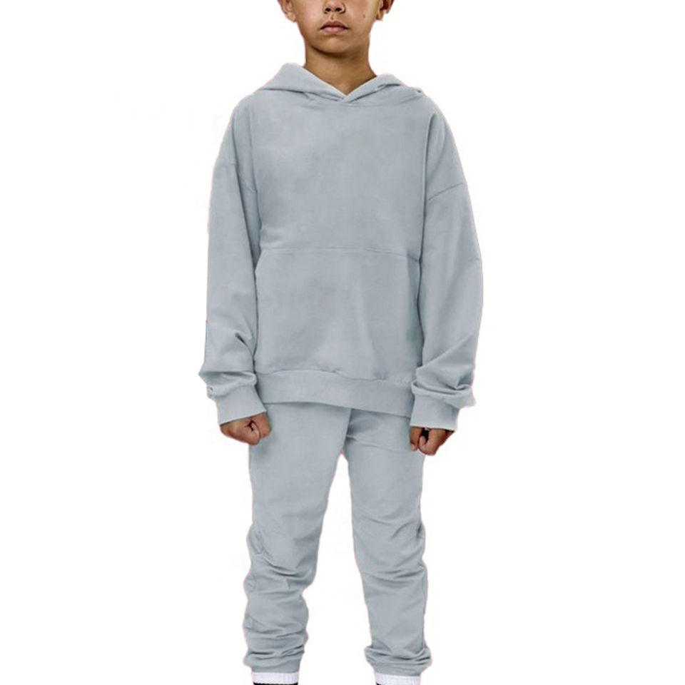 ชุดวอร์มสองชิ้นสำหรับเด็กเสื้อสวมหัวมีฮู้ดและเสื้อสเวตเตอร์ชุดจ็อกเกอร์พิมพ์ลายโลโก้ตามสั่ง