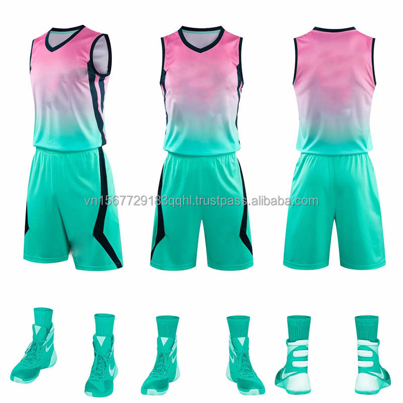 เสื้อบาสเก็ตบอลของผู้ชายผ้าโพลีเอสเตอร์ระบายอากาศแห้งเร็วพร้อมชุดออกกำลังกายกางเกงขาสั้นทีมมีตัวเลข
