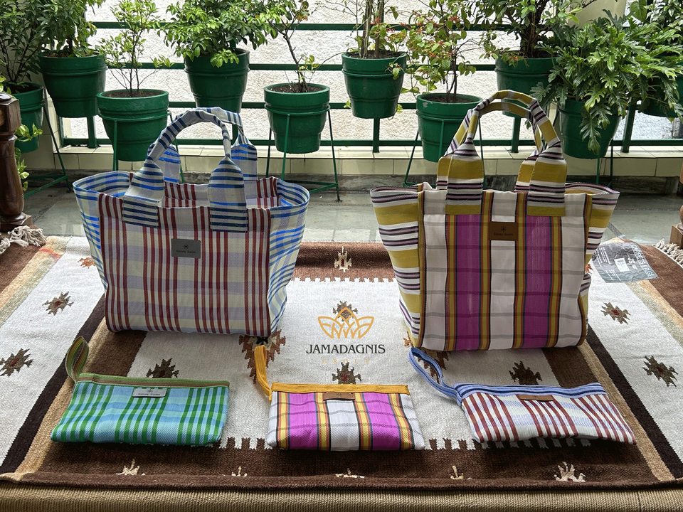 ถุงผ้าไนลอนรีไซเคิลหลากสีแบบใช้ซ้ำได้ถุงช้อปปิ้งโลโก้กันน้ำลายทางหลากสีชายหาดใช้กลางแจ้งทุกวัน