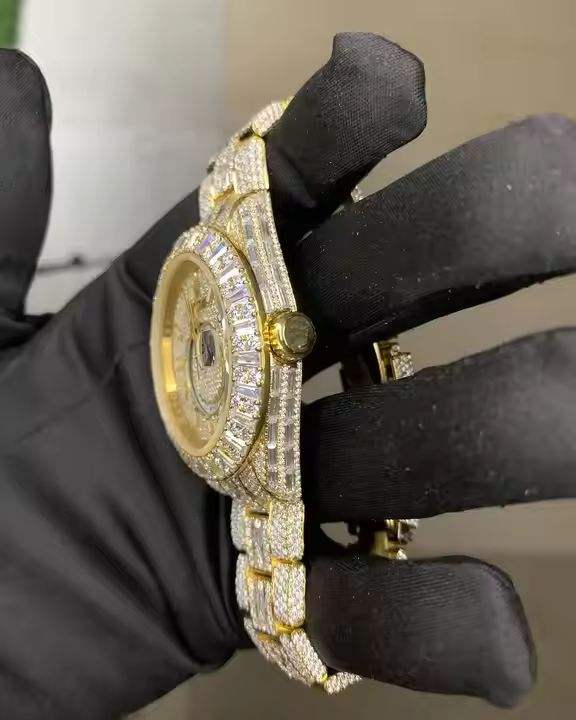 นาฬิกาเพชรแบบอัตโนมัติหรูหราแบรนด์พรีเมี่ยมสำหรับผู้ชายมาใหม่ล่าสุดตัดเหลี่ยมเพชรกันน้ำ