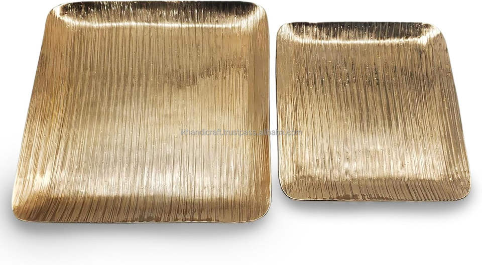 ชุดจานชามตกแต่งรอมฎอนแบบปรับแต่งได้ชุด2ชิ้นสีทองขนาดใหญ่ถาดเสิร์ฟทองเหลืองสำหรับตกแต่งบ้านในช่วงเทศกาลวันหยุดของขวัญ