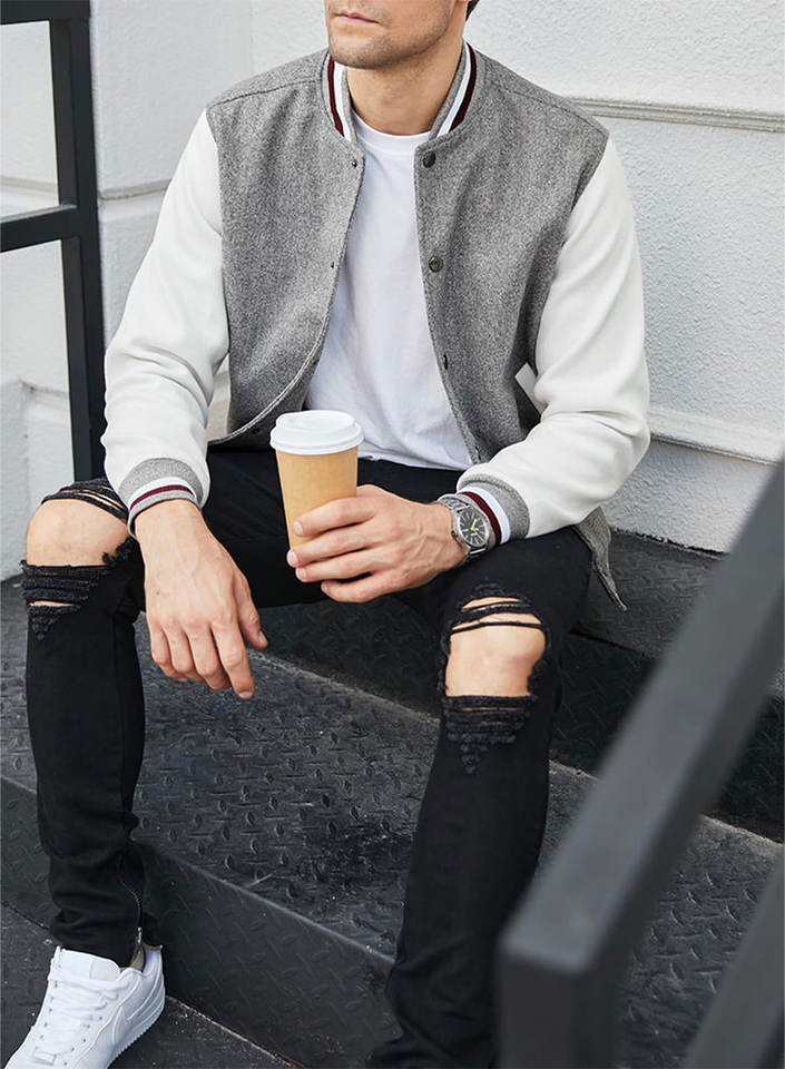แจ็คเก็ตวาร์ซิตี้ผ้าซาตินสั่งทำพิเศษ ตัวเสื้อทำจากผ้าขนสัตว์ แขนเสื้อทำจากหนัง คอตั้ง ทรงเลตเตอร์แมน สำหรับฤดูหนาว สไตล์ไฮสตรีท ระบายอากาศได้ดี ดีไซน์ทันสมัย